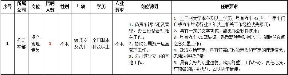 根據(jù)公司業(yè)務發(fā)展需要,現(xiàn)面向社會公開招聘相關(guān)專業(yè)人才,要求如下: